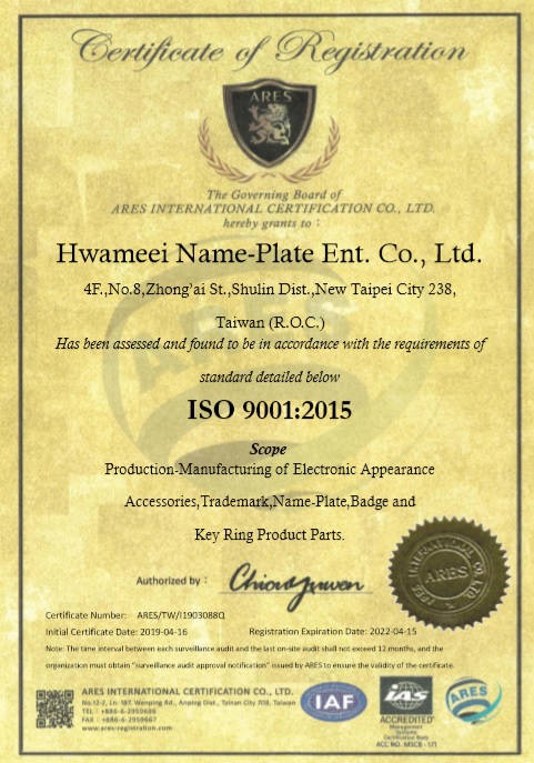 Hwameei Name-Plate Ent.Co.,Ltd. is always in a professional and dedicated attitude to process our customers' requirement and to provide a satifactory service. | |