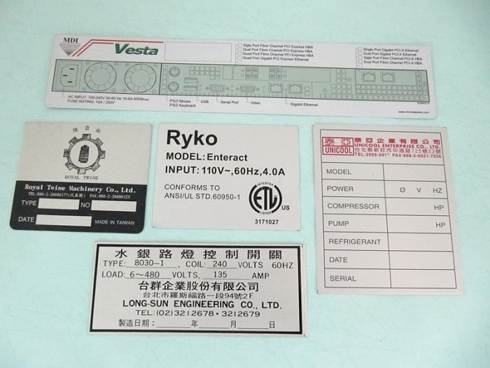 Aluminum printing machinery Name-Plate